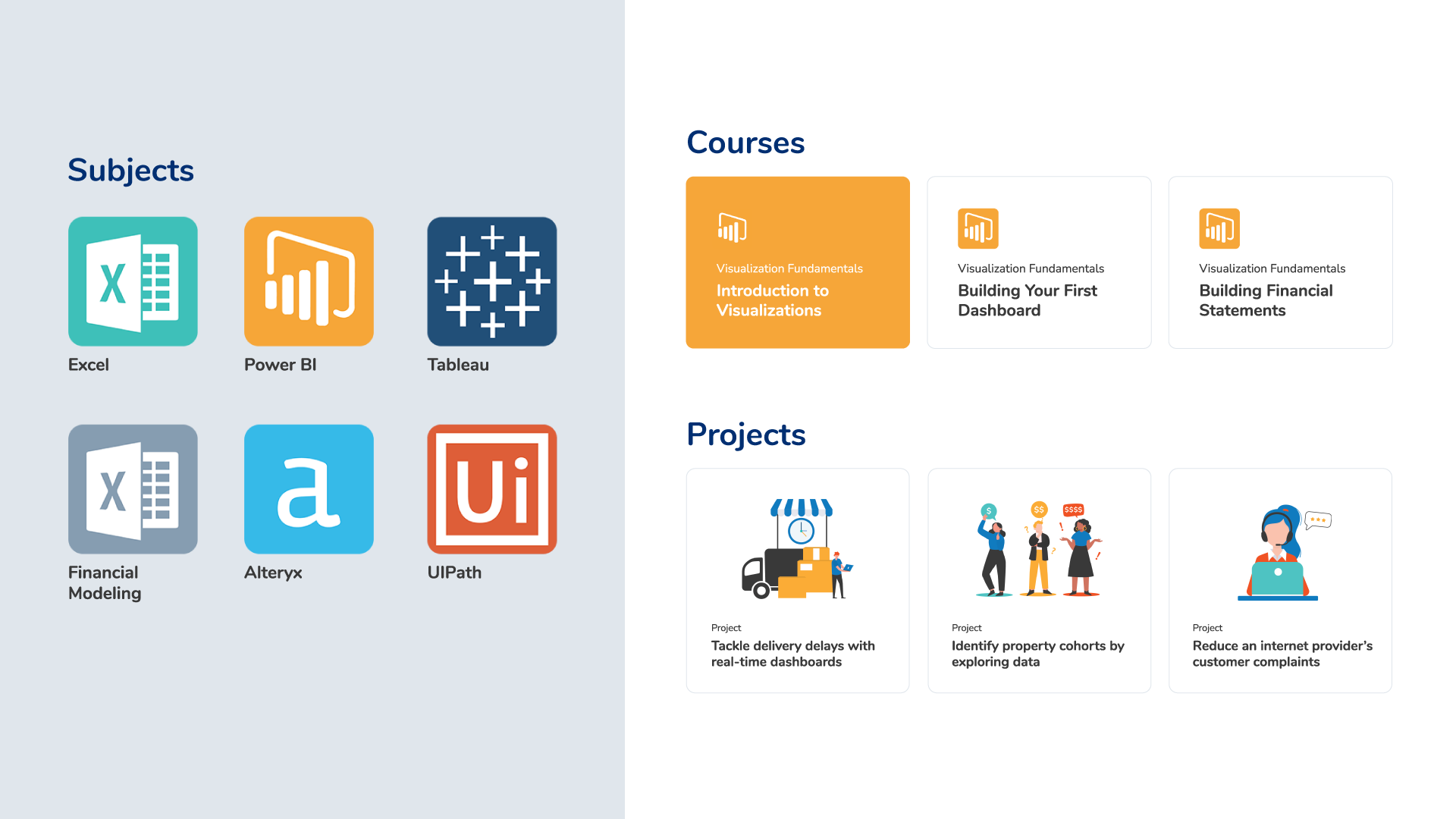 Kubicle’s online learning platform is focused on upskilling individuals and organizations in leading data analytics solutions such as Excel, Tableau, Power BI, and Alteryx.